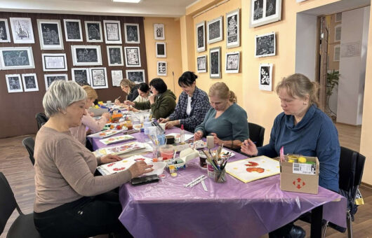 14 березня у бібліотеці №20 відбулося п'яте заняття курсу петриківського розпису під керівництвом Ольги Дмитрієвої —