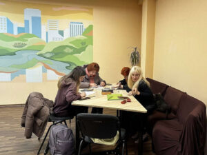 5 листопада у філії №1 волонтерка, медіаторка й арт-терапевтка Тетяна Труфанова провела чергове заняття арт-терапевтичної групи для внутрішньо переміщених осіб. Зустріч, що відбувається щосереди, присвячена відновленню ресурсного стану людини – внутрішнього запасу сил, енергії, натхнення та віри у власні можливості.
