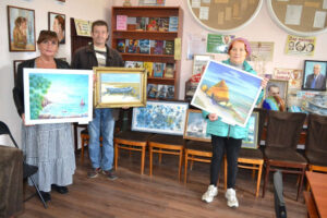 Завідувачка бібліотеки Каріна Апарінова розповіла про експозицію картин і про їх авторів, які багато років співпрацюють з бібліотечним арт-простором —галереєю «Художник далекого плавання». Каріна Вікторівна представила роботи відомих художників Галини Лекарєвої-Нікітіної, Сергія Саєнка, Оксани Церковної, Ганни Павлової і Володимира Чорного.