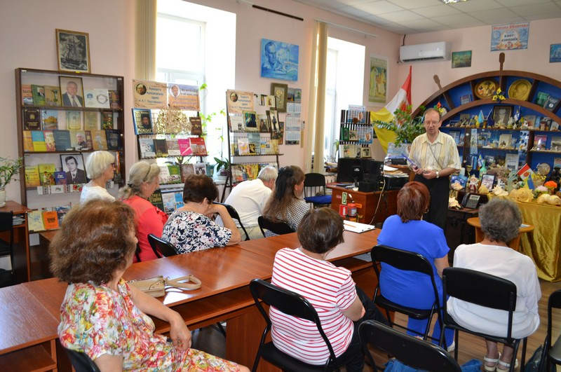 Завідувачка Каріна Апарінова розповіла про творчий і життєвий шлях Олександра Азар’єва та його співпрацю з бібліотекою. Присутнім було цікаво дізнатися про внесок режисера в кінематограф.