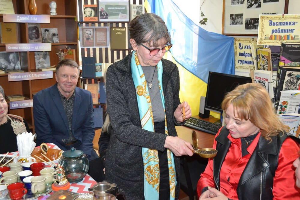 Цього разу завідувачка бібліотеки Каріна Апарінова запропонувала провести зустріч у просторі абонементу — серед книжкових полиць, поруч із видатними письменниками, які також любили чайні церемонії та згадували про них у своїх творах. Пані Каріна порадила присутнім ознайомитися з книгами про українські свята та найдавніші традиції нашого народу.