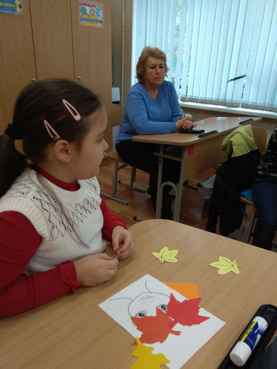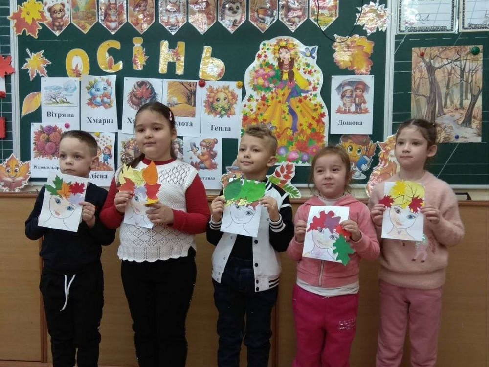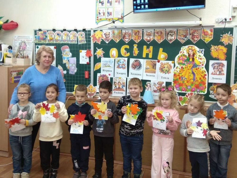 Пані Наталія заздалегідь підготувала висушені осінні листочки різноманітних форм і кольорів. Під час творчого завдання діти створювали з них аплікації на аркушах паперу, прикрашаючи свої малюнки. У кожній роботі було індивідуальне бачення образу Осені як прекрасної жінки – щедрої, яскравої, ніжної. Малюнки вийшли неймовірно душевними та креативними.