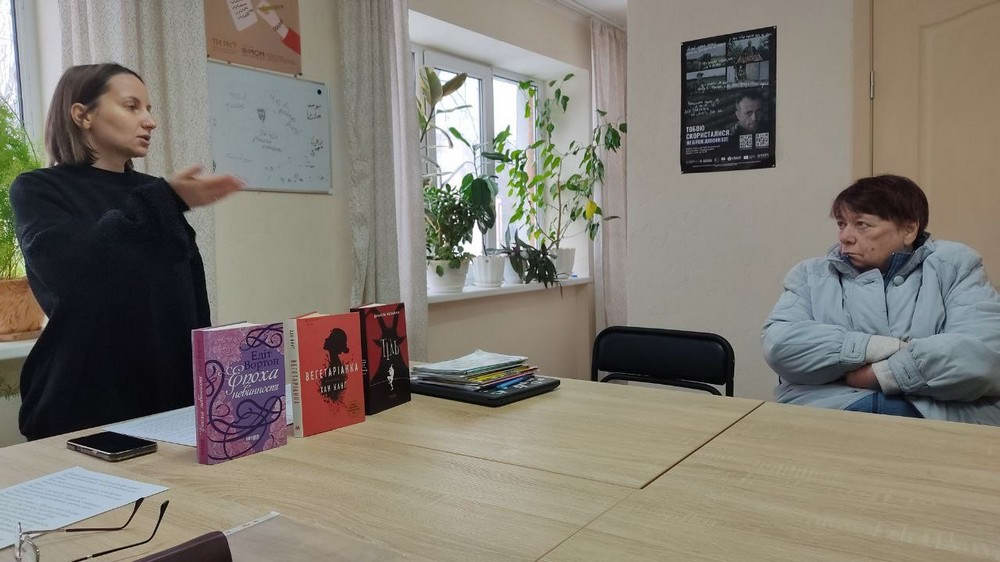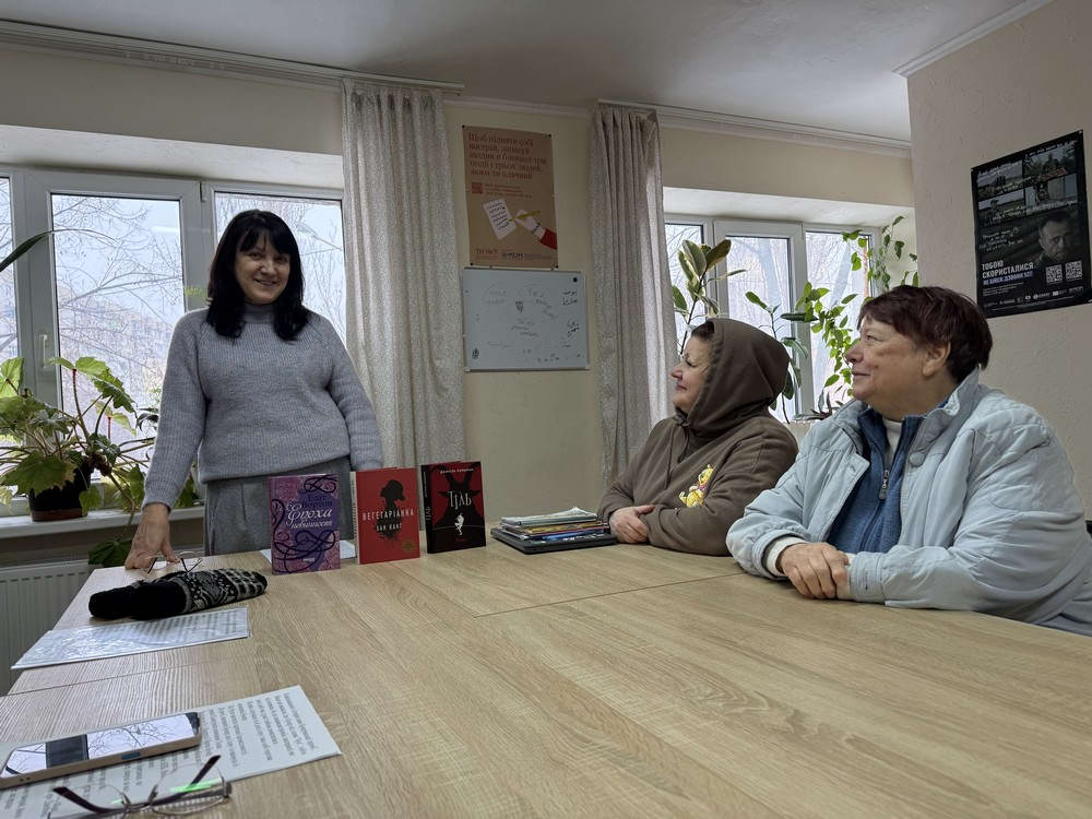 Наприкінці заходу учасники зустрічі з цікавістю розглядали книги на стенді. Це документальна та художня література, до того ж чимало авторів брали участь у добровольчому русі, а дехто й зараз перебуває на фронті.