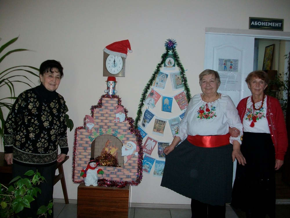 Ялинку прикрасили Наталія Щербіна та Наталія Ткаченко. Тетяна Рогач оформила книжкову виставку «Чарівний світ зимових свят».
