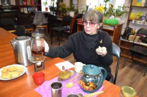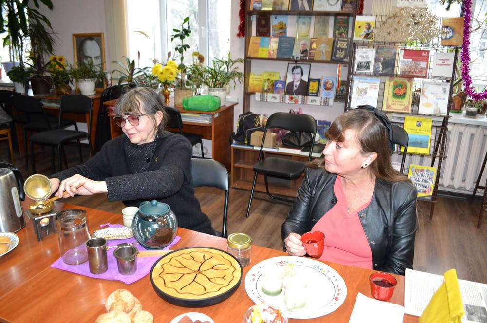 Завідувачка бібліотеки Каріна Апарінова ознайомила присутніх із чайними традиціями України. Бібліотекар Олександр Апарінов розповів про зимові чаювання в Китаї та Японії.