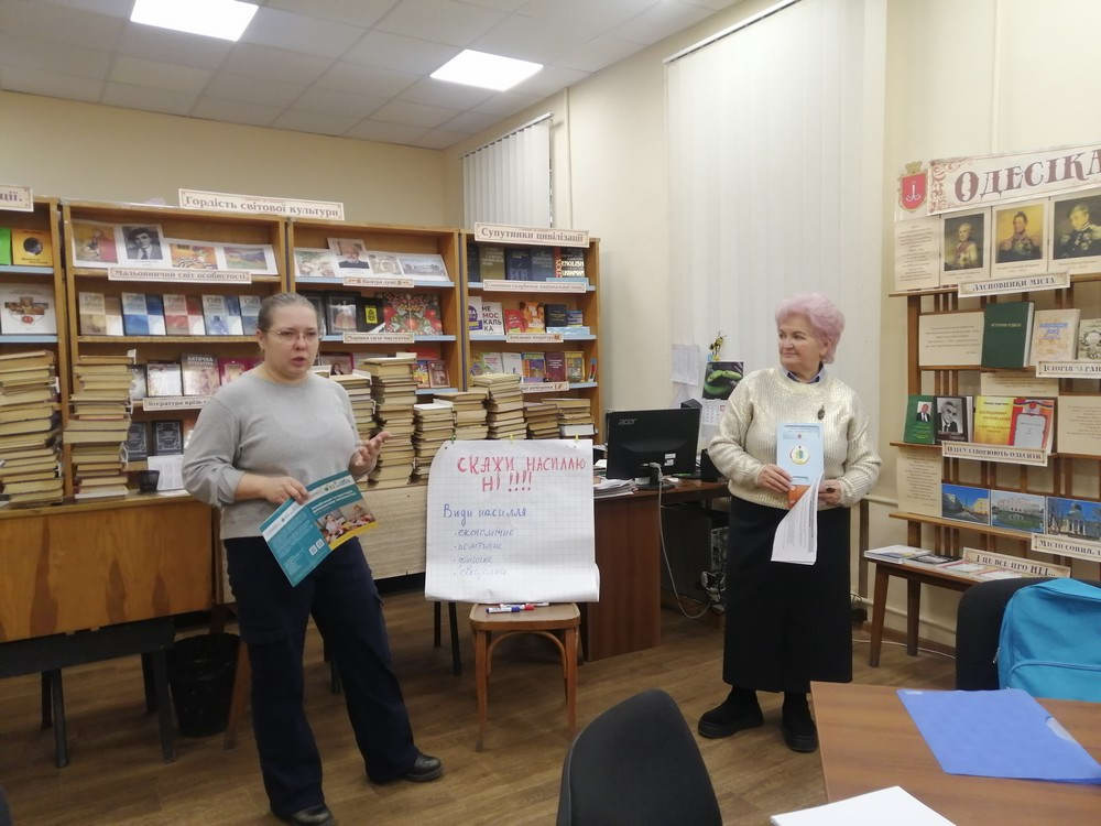 5 грудня у філії №35 відбулася лекція «Скажи насильству НІ» для відвідувачів Центру дитячого дозвілля «Малишкін дім» (від 3 до 120 років). Зустріч провела соціальний педагог Надія Шепелева (ЦСС ОМР).