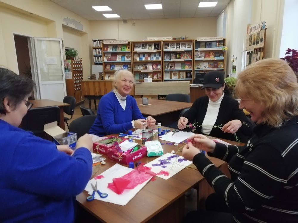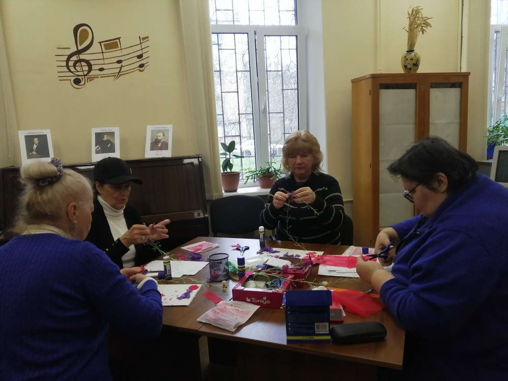 1 квітня в бібліотеці №35 відбулося заняття «Психосоціальна підтримка» для студентів університету третього віку Територіального центру соціального обслуговування Київського району та читачів бібліотеки. Темою стало створення «квіткового бачення» свого життя.