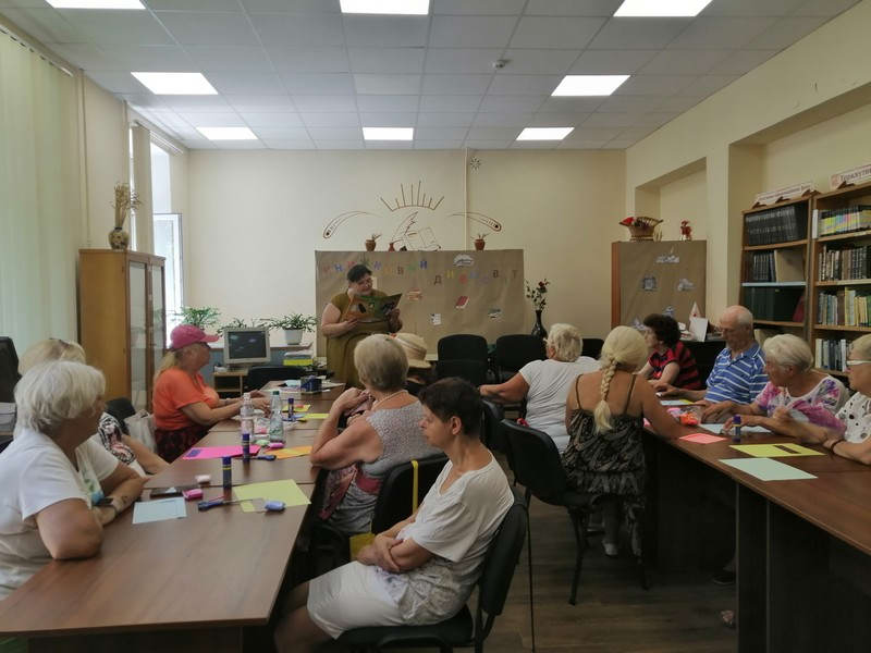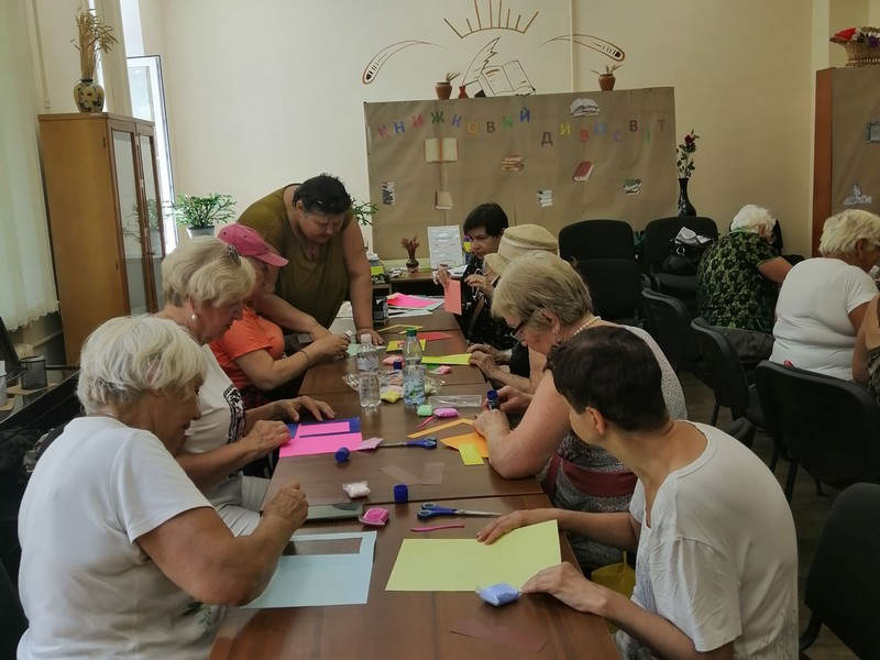 22 липня в бібліотеці №35 пройшло заняття з елементами творчості «Психосоціальна підтримка» для студентів Університету третього віку Київського терцентру та читачів бібліотеки. Темою зустрічі стали вироби з повітряного пластиліну.