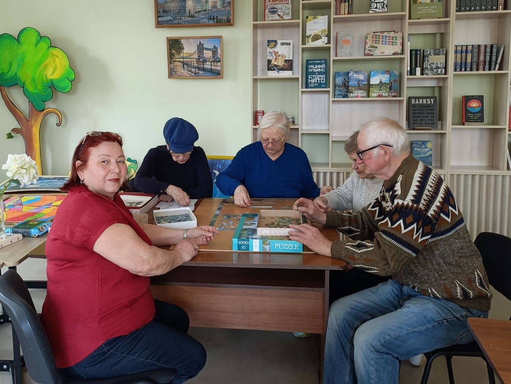 27 березня вiдбулася чергова зустріч постійних відвідувачів арт-терапевтичного клубу “Місце зустрічі з собою”. Вона була присвячена популярному та корисному заняттю — складанню великого художнього пазла.