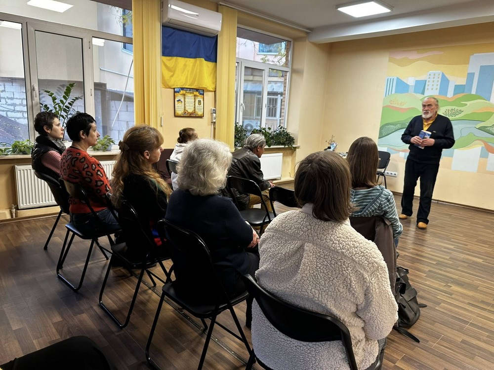 На завершення лекції Степан Мацюк поділився ще одним своїм захопленням — мистецтвом ікебани. Він представив композицію, створену із використанням шунгіту, яка розкривала осінню красу дерев та філософію здоров’я. Її глибина й символізм стали яскравим акордом зустрічі.