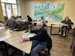 Учасники закріплювали навички користування смартфоном: вчилися надсилати фото, працювати в групах і приєднуватися до спільнот Viber. Усі дії виконували синхронно з викладачем на власних телефонах.