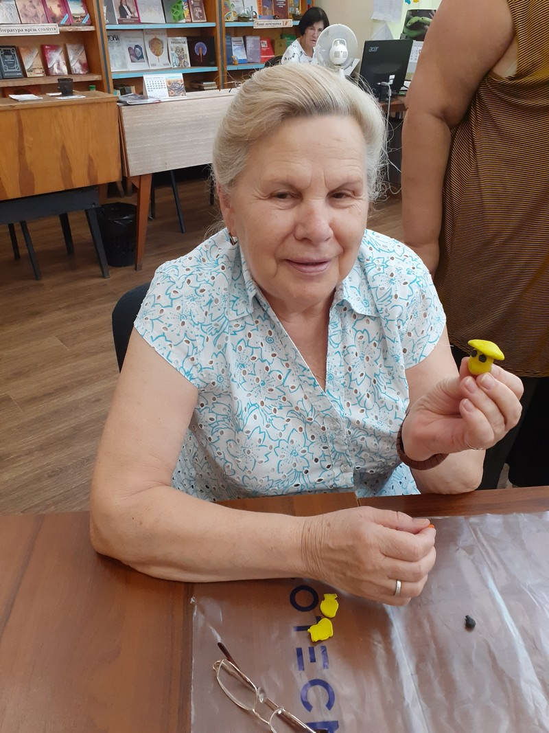 12 серпня в бібліотеці №35 пройшло заняття з елементами творчості «Психосоціальна підтримка». Читачі та студенти Університету третього віку Київського терцентру освоювали ліплення з пластиліну та солоного тіста.