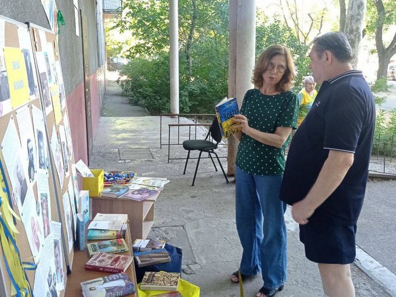 Мета зустрічі – реклама бібліотечних послуг та знайомство з новими цікавими книгами. Увагу відвідувачів читай дворика акцентували на книгах та авторах, які в 2025 році святкують свої ювілеї.