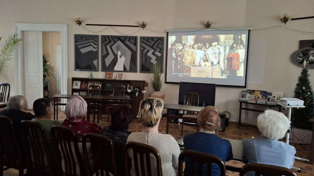 Змістовна розповідь лекторки супроводжувалася демонстрацією відеосюжетів про святкування Різдва в Україні в різні історичні періоди.