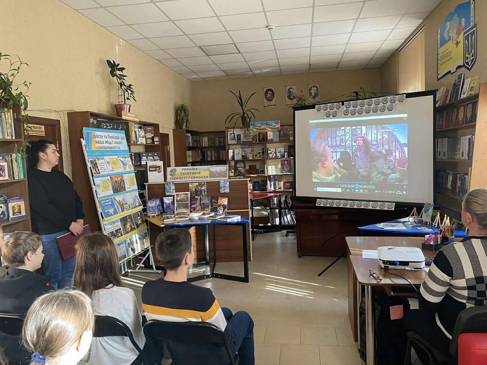 З метою ознайомити школярів з подіями, що стали визначальними для сучасної історії України, а також підкреслити важливість особистої гідності, свободи та відповідальності громадян бібліотекарі продемонстрували відеоролики з документальною інформацією тих подій.