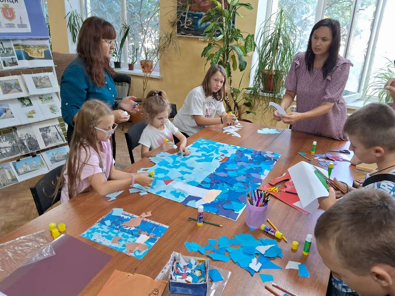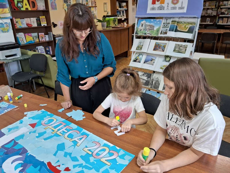 Після інформаційної бесіди діти взяли участь у творчий майстерні, де спільними зусиллями створили аплікацію з кольорового паперу на ватмані, зобразивши Одеський маяк, який прикрасив книгозбірню.