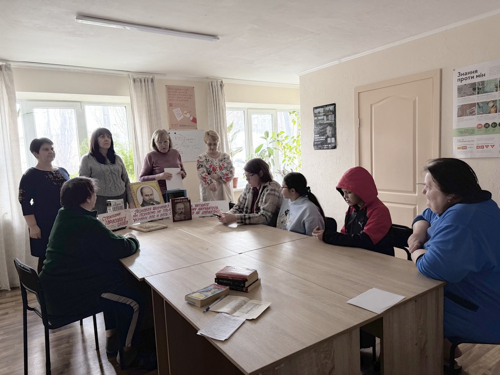 Співробітники бібліотеки підготували книжкову виставку, на якій були представлені різні видання, що допомагають глибше зрозуміти епоху Шевченка. Під час зустрічі розповіли про життєвий шлях поета — від складного дитинства кріпака до визнання його одним із найвидатніших діячів української культури.