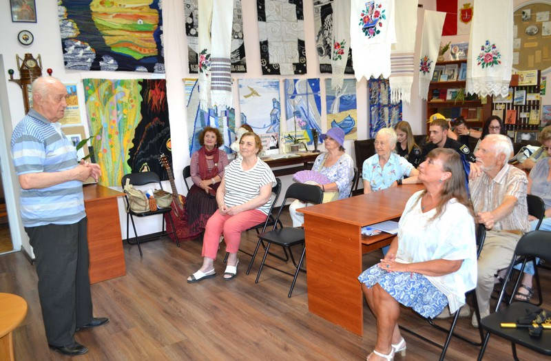 Завідувачка бібліотеки Каріна Апарінова привітала гостей, відбила склянки в морську ринду разом із капітаном першого рангу Євгеном Лівшицем і розповіла про історію свята. Учасники дізналися від Євгена Лівшиця, голови Асоціації моряків-підводників, про його військову службу та підтримку ЗСУ його родиною з 2014 року.