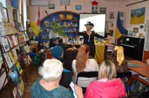 Завідувачка бібліотеки Каріна Апарінова відкрила захід і протягом вечора читала вірші про осінь Галини Вовченко та Наталії Калиновської.