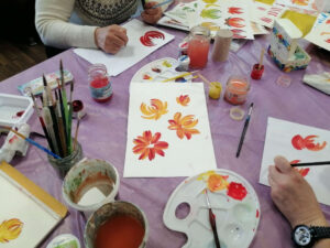 Учасниці продовжили опановувати основні елементи петриківського розпису, відпрацьовували мазки та створювали перші квіткові композиції, відчуваючи ритм орнаменту й гармонію кольору. Курс розрахований на новачків і має на меті художній розвиток учасників, ознайомлення з традиціями та базовими основами цього самобутнього мистецтва.