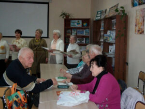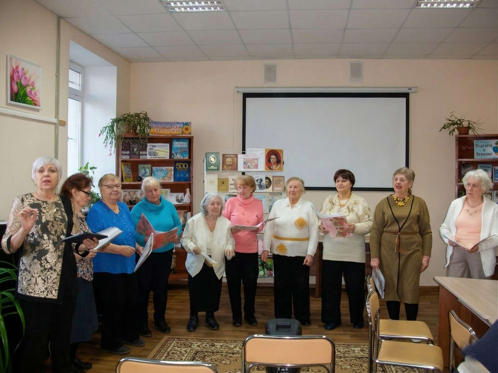 Хор «Співучі серця» виконав українські пісні. Поети клубу Валентин Осінь і Володимир Буланов подарували співробітницям та читачкам бібліотеки власні вірші. Михайло Шолошенко та Іван Гора побажали всім жінкам здоров’я, любові та гарного настрою, Олена Рапай порадувала присутніх гуморесками, а Галина Вірт продекламувала вірші, присвячені жінкам.