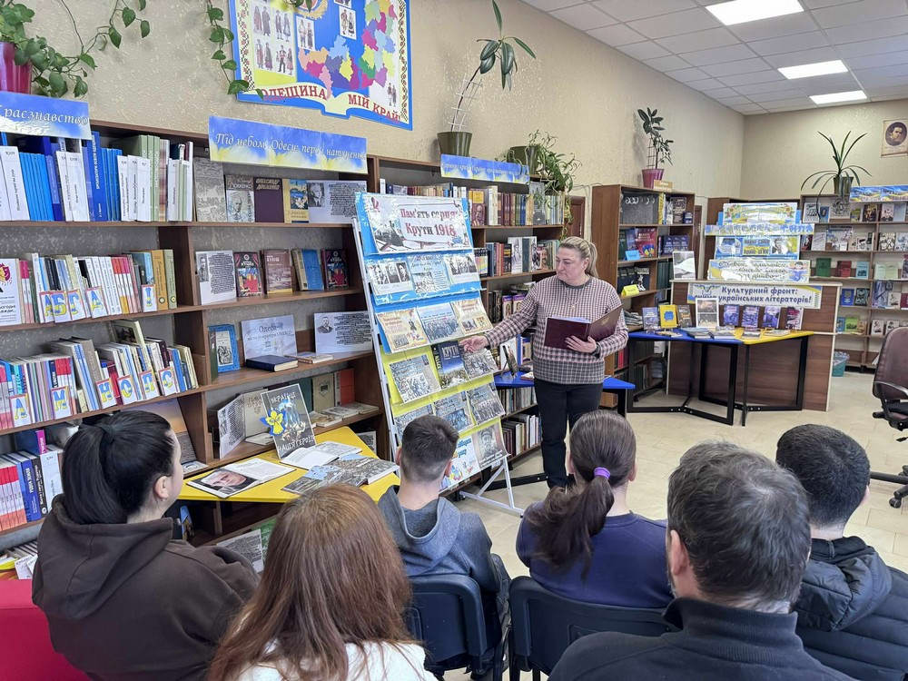 На виставці було представлено історичні, науково-популярні та публіцистичні, художні видання, які висвітлюють передумови бою, перебіг подій та його наслідки для українського державотворення. Вікторія Старченко розповіла читачам бібліотеки про героїзм і самопожертву юних захисників, яких згодом назвали символом незламності українського духу.