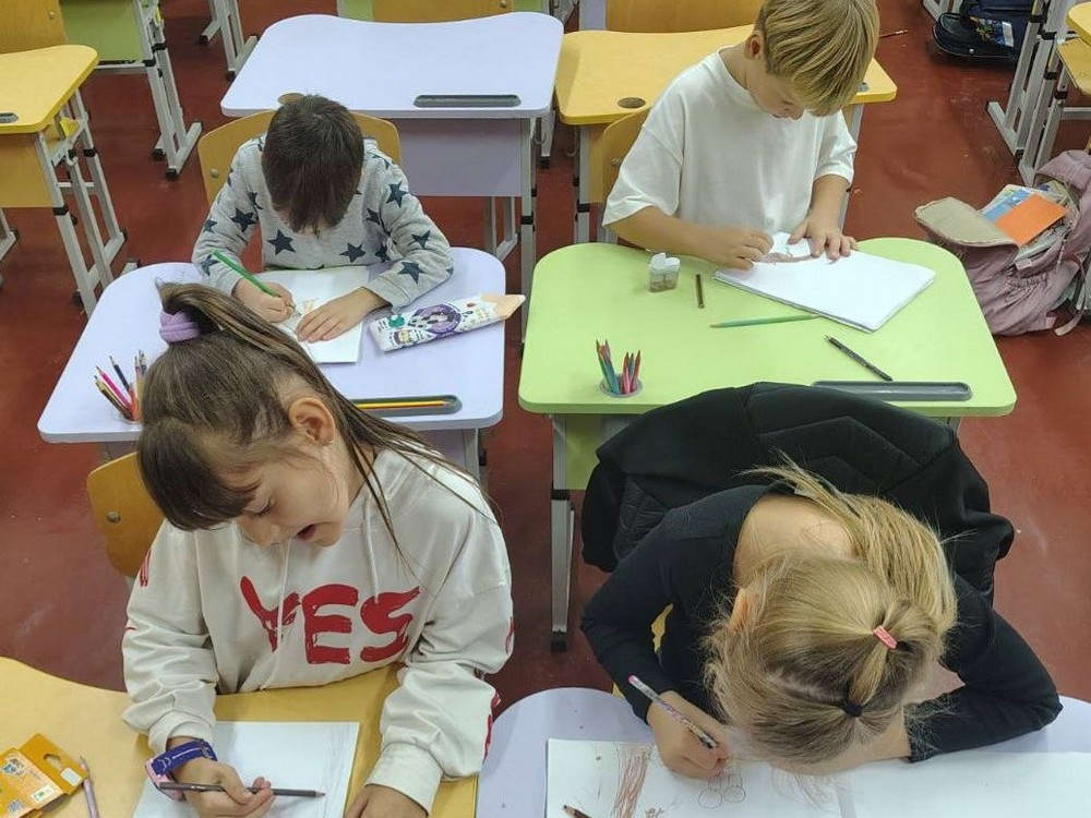 Після читання бібліотекарі запропонували учням намалювати ілюстрації до оповідання. У класі запанувала натхненна тиша, а дитячі малюнки відобразили щирість, емоції та розуміння теми. Кожен учень поділився, які уроки виніс із почутої історії.