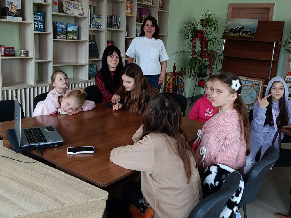 Юні читачі бібліотеки активно представлялися, розповідали про себе та відповідали на запитання Дагне. В процесі комунікації діти допомагали одне одному з перекладом складних термінів та роз’яснювали незрозумілі моменти.