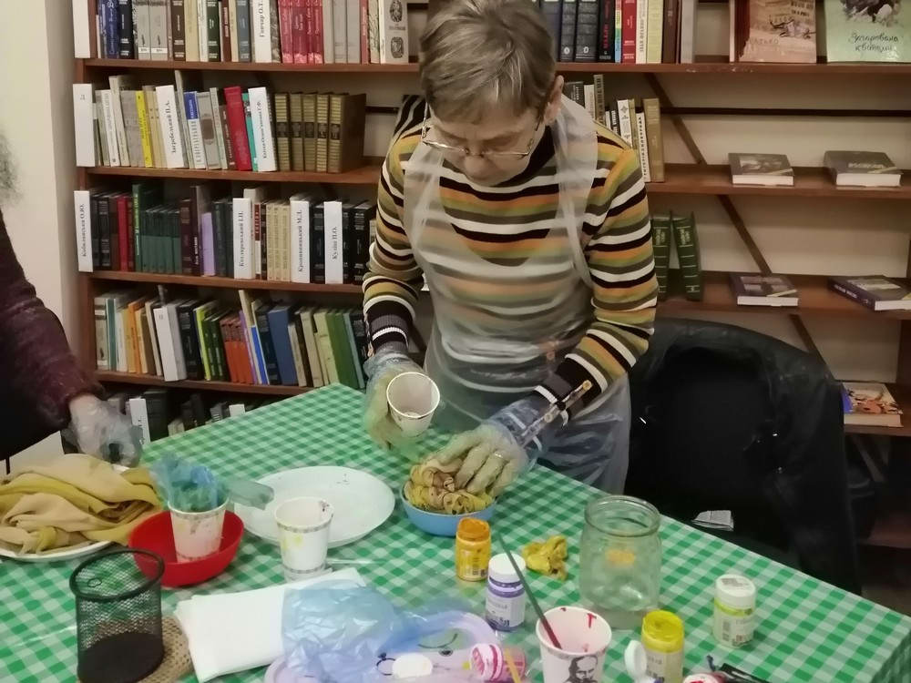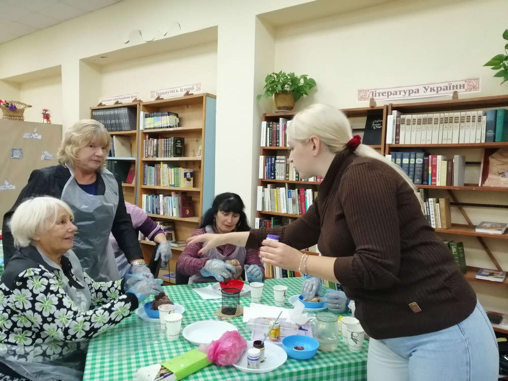 7 жовтня в книгозбірні №35 пройшов майстер-клас «Розпис хустинки» для студентів Університету третього віку Київського терцентру та читачів бібліотеки. Заняття провела майстер художнього розпису Галина Харіна.