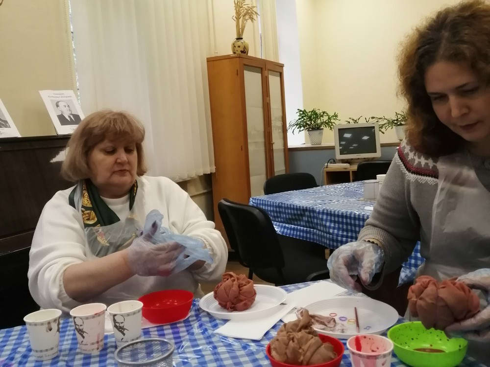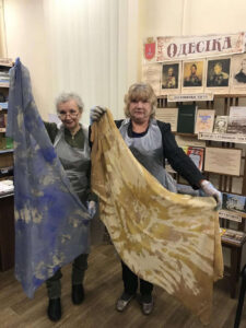 У кожної учасниці майстер-класу вийшов особливий, унікальний візерунок, оскільки це залежить від розташування складок та способу нанесення барвника.