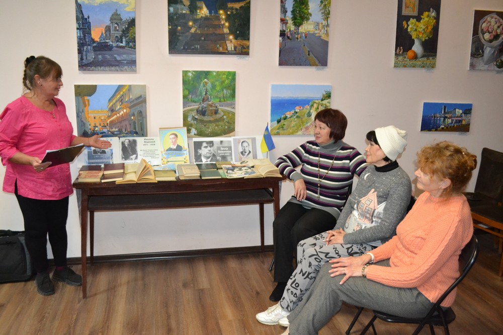 Завідувачка бібліотеки Каріна Апарінова представила видання та біографії письменників, які народилися з 1 по 6 грудня: Платона Воронька, Григорія Сковороди, Григорія Тютюнника, Олександра Олеся та Миколи Вороного.