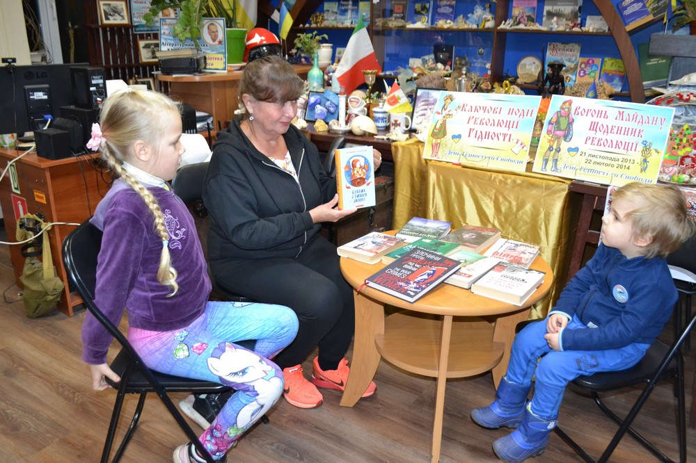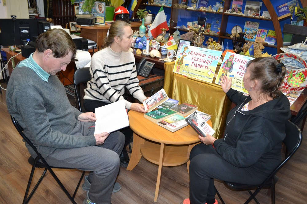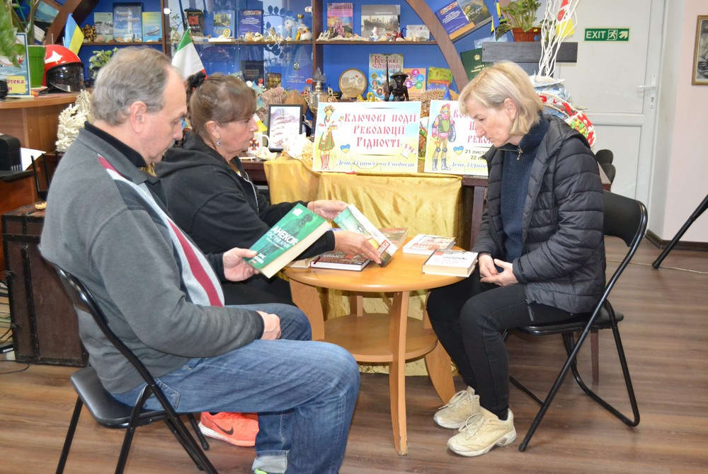 Завідувачка бібліотекою №2 Каріна Апарінова розповіла історію Дня Гідності та Свободи і представила історичні твори, які свідчать про незламний дух українських патріотів.