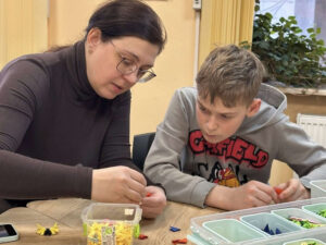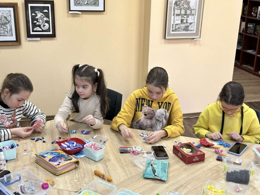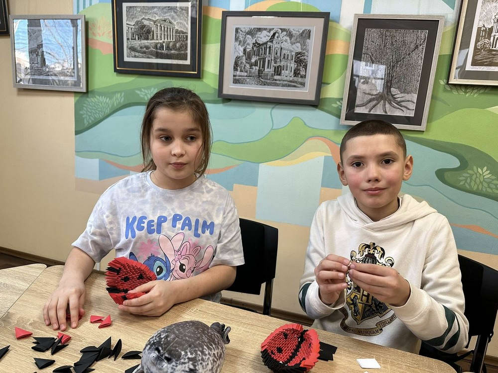 7 березня у бібліотеці-філії №20 учні студії «Модульне оригамі» під керівництвом Євгенії Ніколаєвої — викладачки ОХФК ім. М. Б. Грекова — працювали над створенням об’ємних паперових фігурок-«сонечок» (божих корівок).