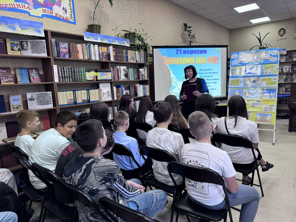 17 вересня, напередодні Міжнародного дня миру, у книгозбiрнi №25 було організовано та проведено пізнавально-патріотичний захід «Фактографія миру» для учнів 7-А класу ліцею №6.