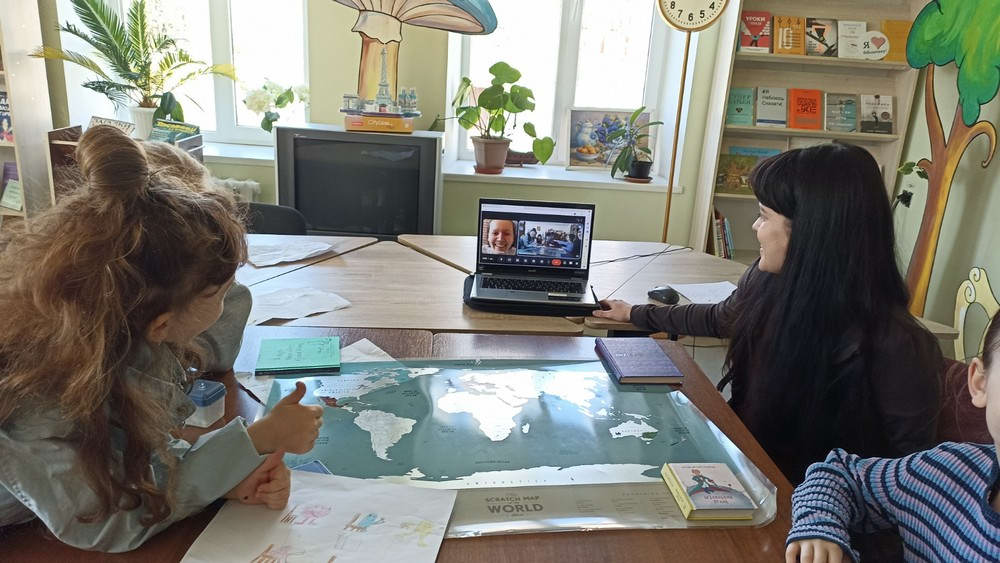 Головною подією зустрічі стало онлайн-спілкування з директоркою організації Анастасією Рогожиною, яка підключилася з Києва. Вона поділилася цікавими фактами про своє життя, а діти англійською мовою розповідали про власні пригоди за останній час.