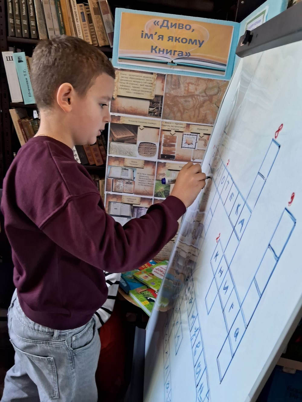 Наприкінці уроку бібліотека підготувала для учасників цікавий кросворд про книгу. Вiн допоміг закріпити отриманні знання.