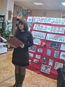 Бібліотекарі підготували тематичну виставку літератури, присвячену Голодомору 1932–1933 років, щоб нагадати відвідувачам про трагічні сторінки нашої історії та необхідність збереження правди. На виставці була представлена поема Надії Хохлової «Сичавка», яка здобула перемогу посівши перше місце в літературному проєкті «ГЕНОЦИД», організованому Корпусом розвитку української культури наукового товариства студентів, аспірантів, докторантів та молодих вчених Національного універсітету «Одеська політехника».