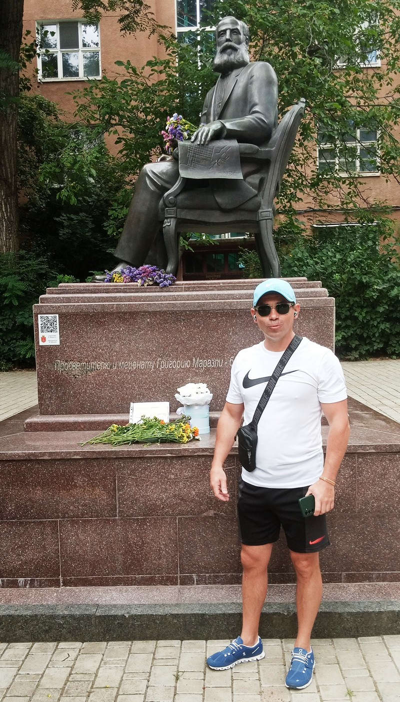 У молодої людини на фотографії теж у цей день – день народження. І він також приніс квіти Григорію Маразлі.