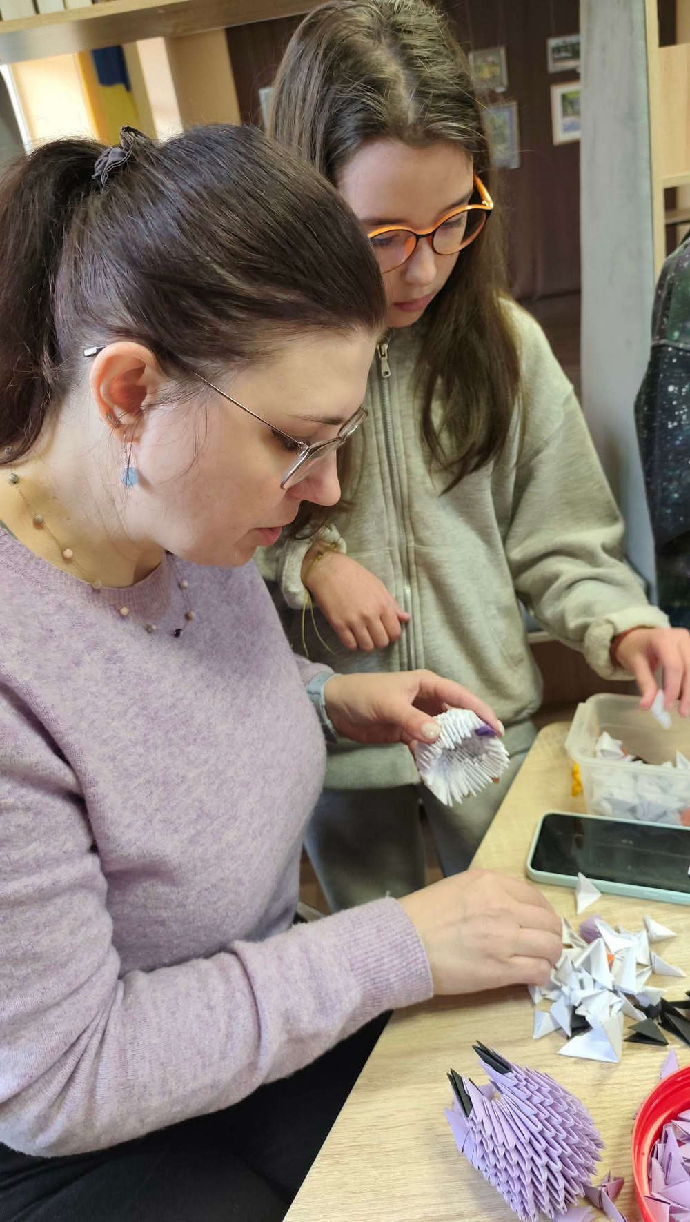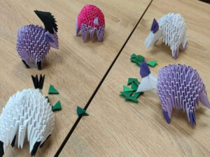 Бібліотекарі нагадали, що модульне оригамі — це мистецтво терпіння та уважності: кожна фігура складається з десятків і навіть сотень маленьких модулів, які тримаються разом без клею. Євгенія Ніколаєва навчала дітей точності рухів і зосередженості, завдяки яким із звичайного аркуша паперу народжується об’ємна форма.