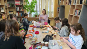 11 квітня в бібліотеці №20 під керівництвом майстрині, художниці та викладачки ОХФК імені М. Б. Грекова Євгенії Ніколаєвої учасники студії модульного оригамі створювали паперових баранців. До заняття долучилися також студентки другого курсу коледжу.