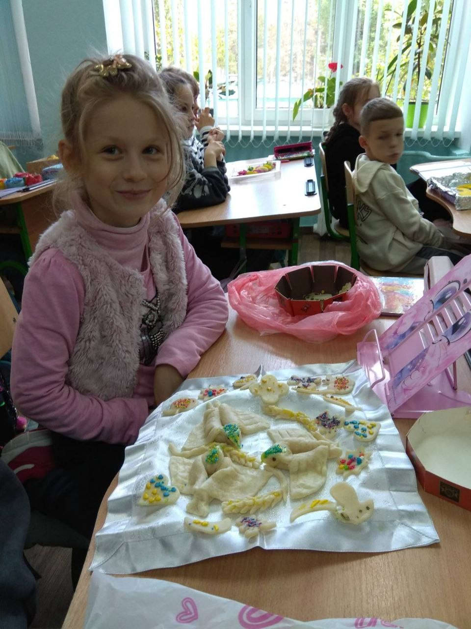 Класний керівник Людмила Соболєва доповнила розповідь цікавою бесідою про традиції шанування хліба в Україні, про те, як колись берегли кожну крихту, як з хлібом зустрічали гостей і благословляли молодят на щасливе життя. Учні разом зі своїми родинами заздалегідь приготували смачні вироби з тіста – запашні тістечка, булочки, коровай, печиво. Усі ці домашні смаколики діти з гордістю представили на святі, розповідаючи, як саме вони їх випікали та хто допомагав удома.