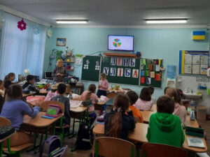 Для школярів бібліотекарі підготували кошик із запитаннями для вікторини. Діти по черзі витягували картки й відповідали на цікаві питання про хліб: як він з’являється на нашому столі, що символізують колоски, які прислів’я про хліб знає український народ.