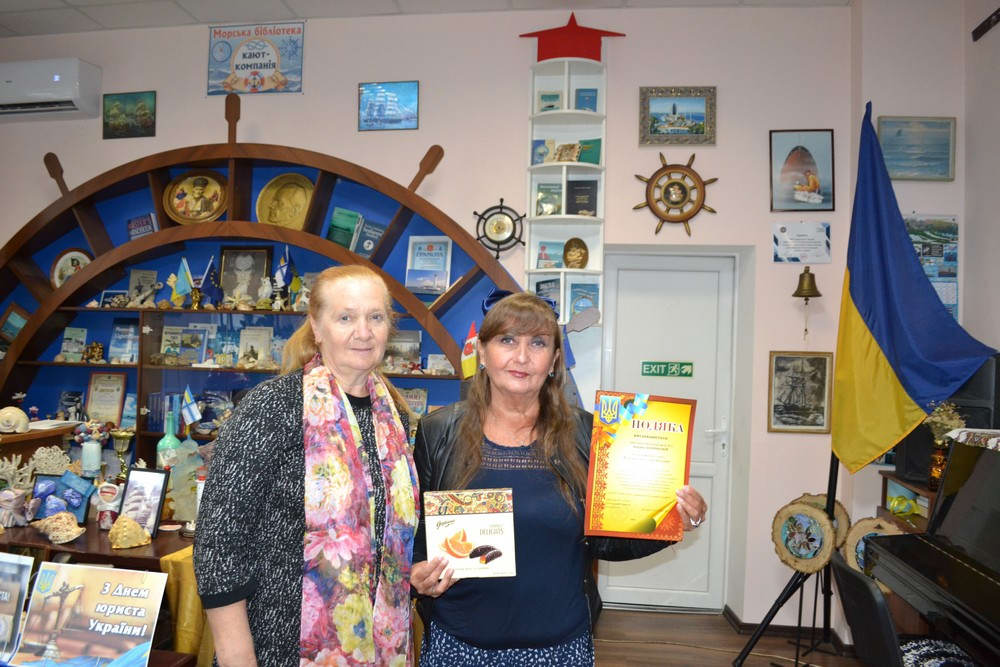 Завідувачка Каріна Апарінова отримала подяку з нагоди професійного свята Всеукраїнського дня бібліотек від директорки ТЦСО Приморського району Людмили Регульської. Каріна Вікторівна розповіла про багаторічну співпрацю бібліотеки №2 із студентами Університету третього віку Приморського терцентру.