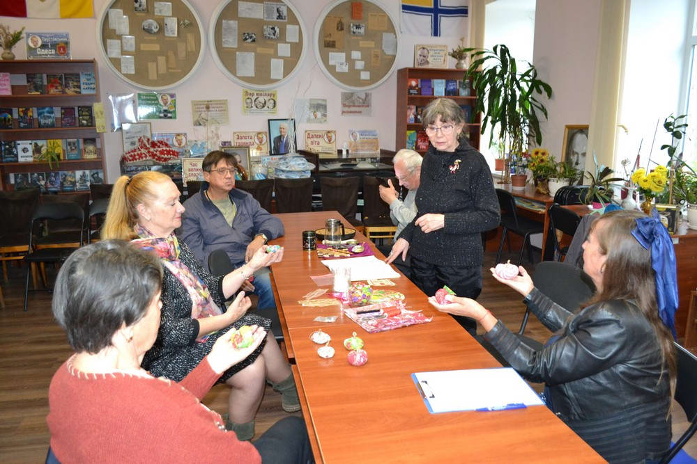 Арт-терапевт Лідія Дика продовжила майстер клас по виготовленню осінніх плодів. На цей раз робили яблука. Лідія Валентинівна познайомила з цікавими і корисними рецептами з осінніх овочів і фруктів.