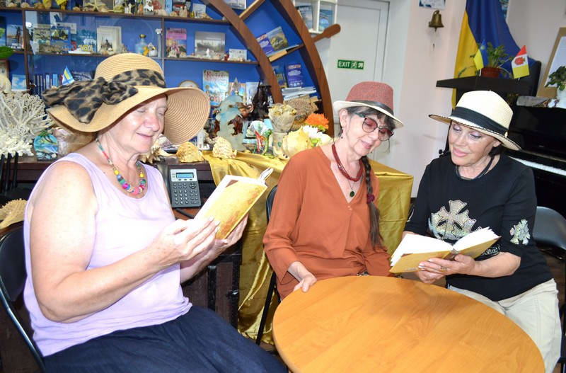 Завідувачка бібліотеки Каріна Апарінова представила книгу «Календар любові», що містить 365 віршів на кожен день року. Присутнім було цікаво обрати вірші, присвячені любові, природі, війні чи життю, та зачитати їх уголос, поділившись особистими враженнями.