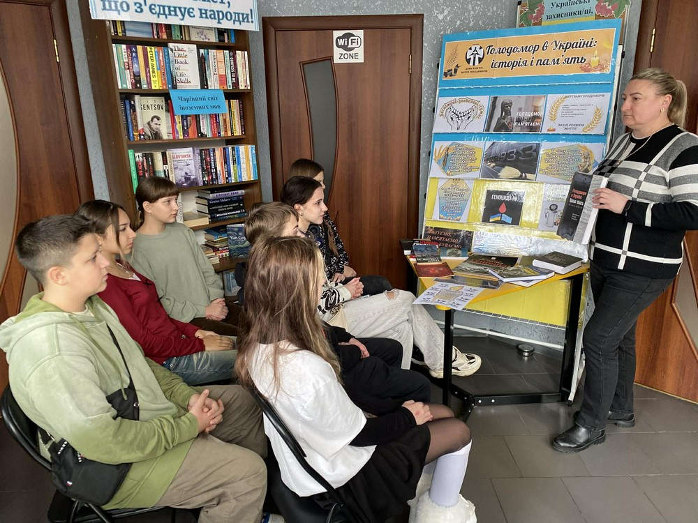 Бібліотекарка Вікторія Старченко розповіла про події тих років, про те, як штучно створений голод забрав життя мільйонів українців. Було висвітлено факти про масове вилучення зерна й продуктів, заборону людям залишати місця проживання та про те, як родини боролися за виживання.