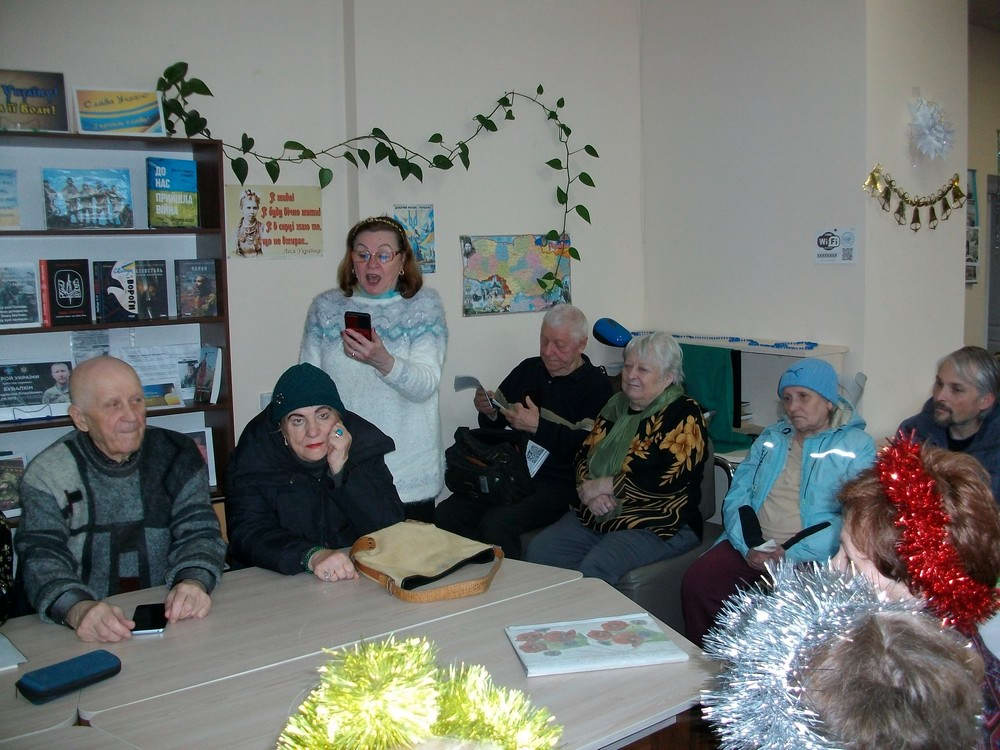 Гурт «Співучі серця» подарував літературно-музичну композицію: учасники читали вірші, виконували різдвяні щедрівки, колядки, «Щедрик», «Щедра Маланка» та інші твори. Власні вірші прочитали Валентина Ніколаєва, Галина Вірт, Галина Літвінова та Валентин Осінь, який подарував бібліотеці нові видання своєї книги з автографом.