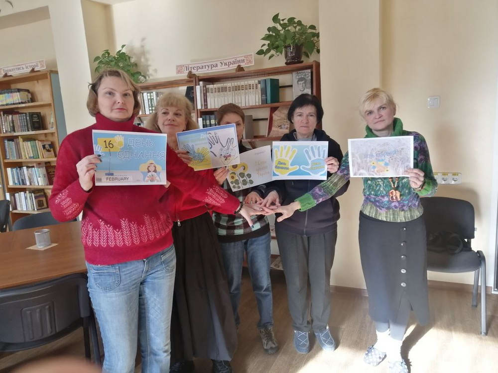 16 лютого всі філії Централізованої бібліотечної системи для дорослих долучилися до патріотичного флешмобу з нагоди Дня єднання України. Бібліотекарі та читачі об’єдналися під синьо-жовтими стрічками та гаслами «Ми разом!», «Єдність — наша сила!», «Україна понад усе!».