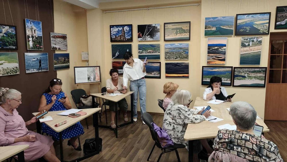Студентки Університету третього віку Приморського терцентру розповіли бібліотекарям, які труднощі виникли при виконанні домашнього завдання. На другому етапі заняття вони обговорили різні способи звільнення пам’яті на смартфонах та роботу з повідомленнями в додатках для спілкування. Учасниці курсу також повторили основні функції месенджерів та вчилися ефективніше ними користуватися.