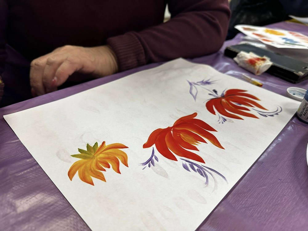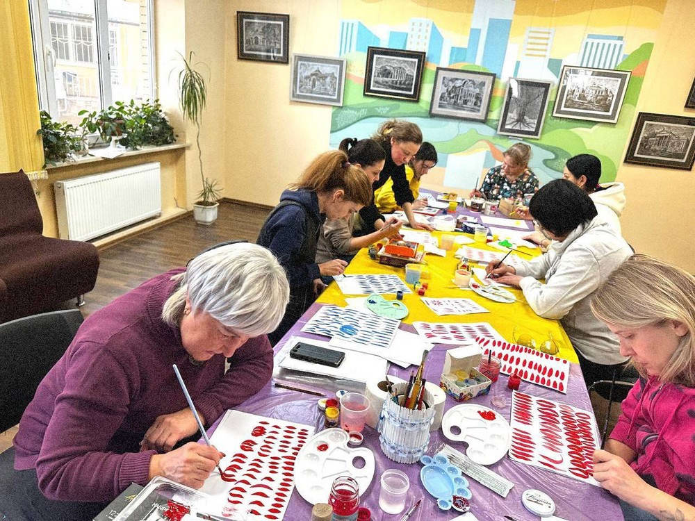 На першому занятті викладач приділила особливу увагу техніці основних мазків пензлем у петриківському розписі. Учасниці методично вчилися «ставити руку», опановували правильний натиск та виводили перші пелюстки. Це був момент зосередженості, майже медитації. Можливо, це й було трохи розмірено, але «художньо-естетичне світовідчуття кожного автора проходить крізь призму його терпіння та витримки», — підкреслює Ольга Олександрівна.